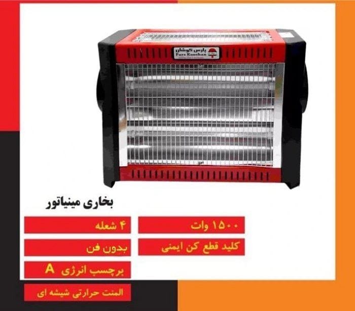 معرفی بخاری برقی پارس کوشان مدل مینیاتور ۱۵۰۰ وات بدون فن