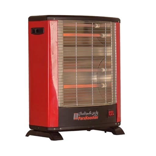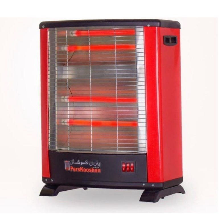 بخاری برقی پارس کوشان مدل پیلوت بدون فن با توان 2000 وات، چهار المنت سرامیکی و سیستم ایمنی خاموشی خودکار؛ مناسب برای گرم کردن اتاق‌ها و فضاهای کوچک به‌صورت طبیعی و کم‌صدا.